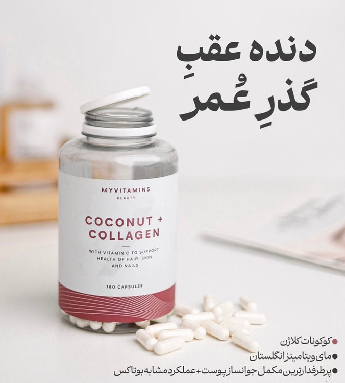 ویژگی: فرمول ترکیبی کلاژن + نارگیل طبیعی + ویتامین C برای شادابی پوست از درون